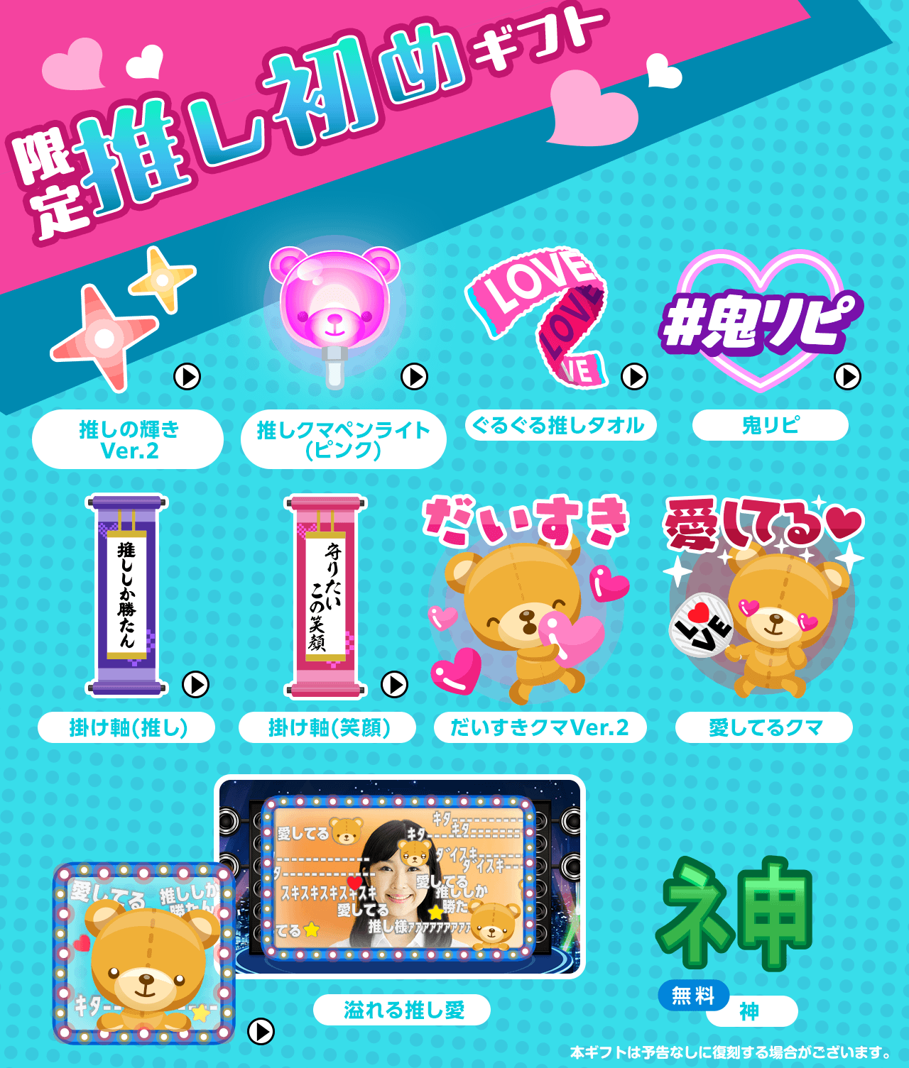 ・対象ギフトは、キャンペーン期間中に全配信ルームに表示されます。