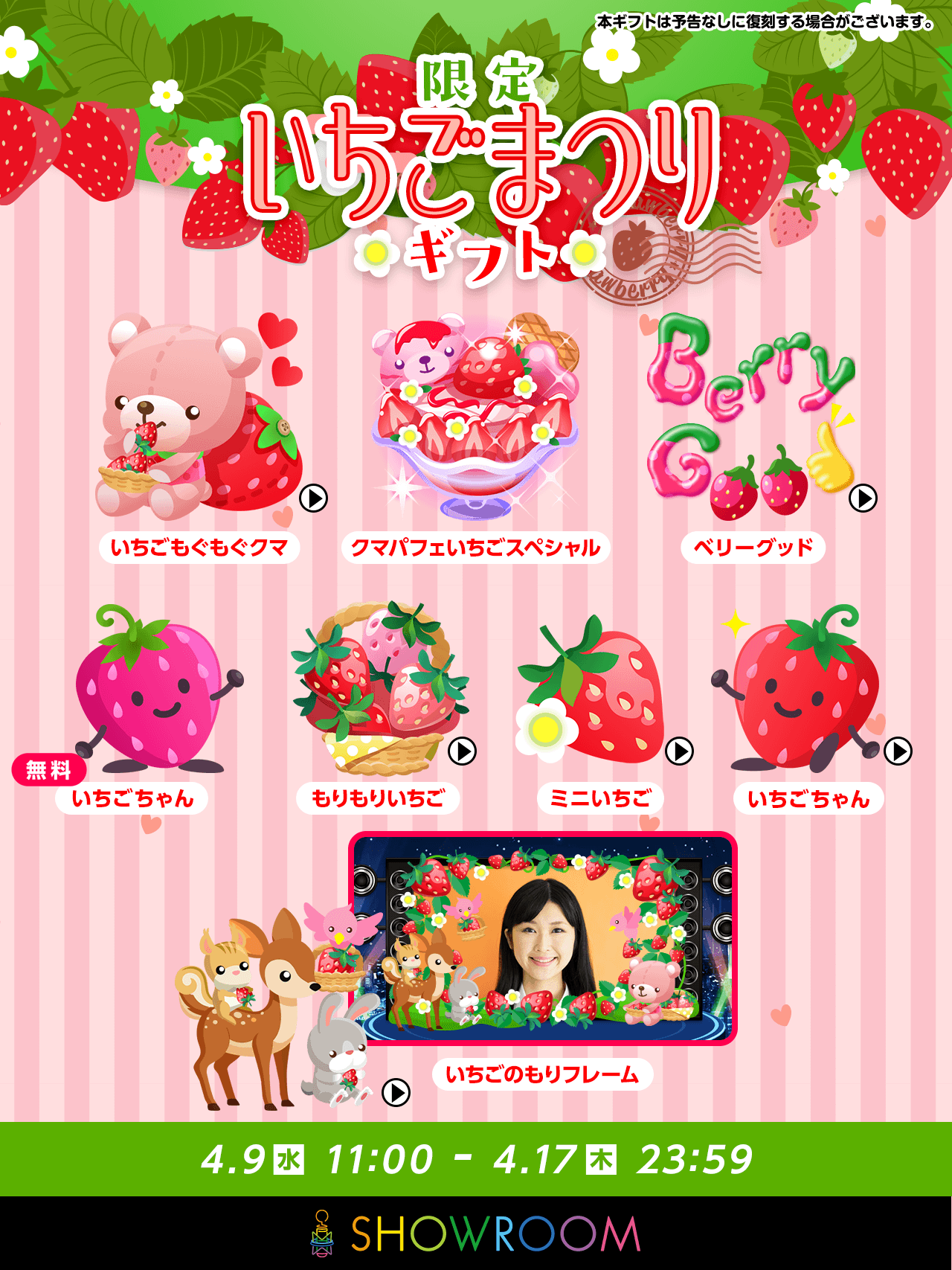 ※限定 いちごまつりミッションの達成報酬については配信ルーム内にてご確認ください。